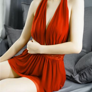(情趣内衣)羞羞宝贝深V性感挂脖睡裙(红)